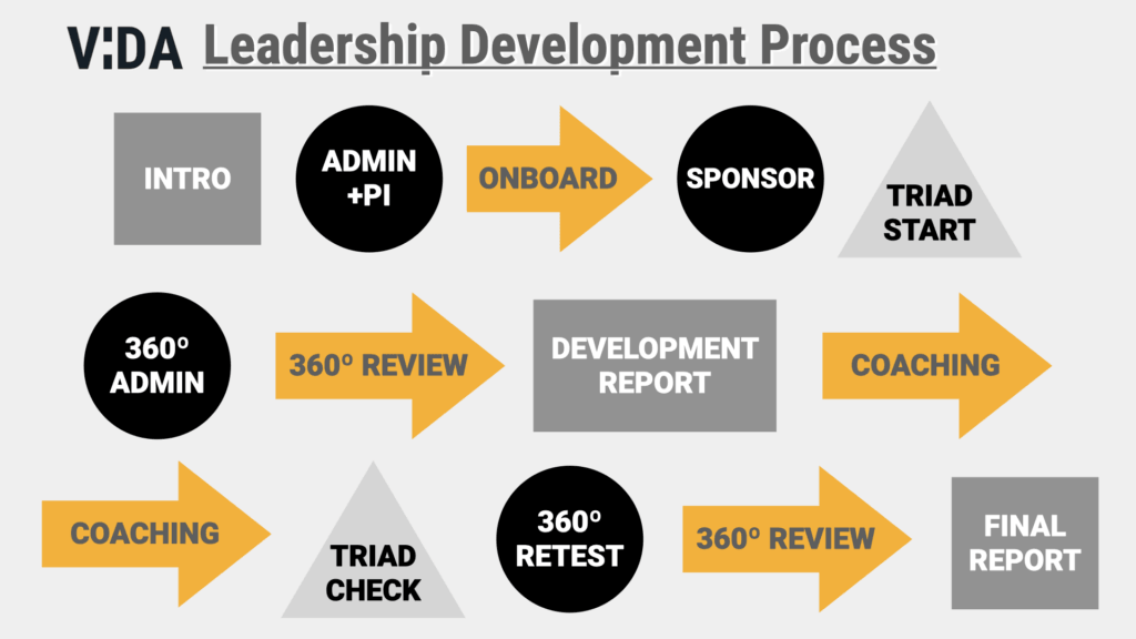 Here is a typical 12-step process for a sponsored coaching relationship that includes 360° feedback, reports and accountability for leadership development.