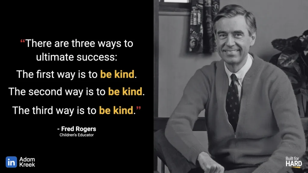 "There are three ways to ultimate success: The first way is to be kind. The second way is to be kind. The third way is to be kind."
