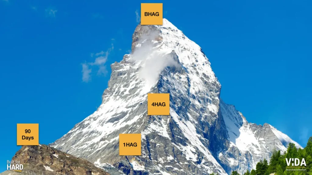 - And the Big Hairy Audacious Goal (BHAG)—your 15–30-year mountaintop