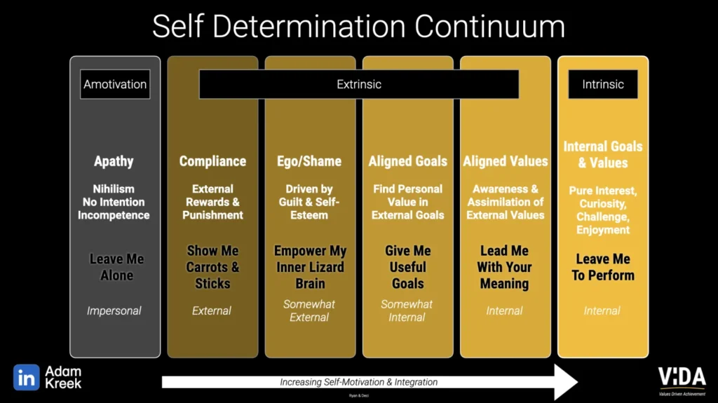 Most people try to motivate by pushing harder. What if we flipped the script—and pulled? The Self-Determination Theory (SDT) Continuum offers a practical map of human motivation, from external pressure to deeply internal drive. I’ll walk you through the model below, and show how you can use it to shift your team—and yourself—into action that actually sticks.