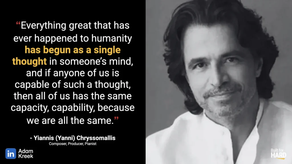 Yanni didn’t plan a concert; he built a reusable media product with multiple profit streams and enterprise value. Visionaries think beyond the transaction.